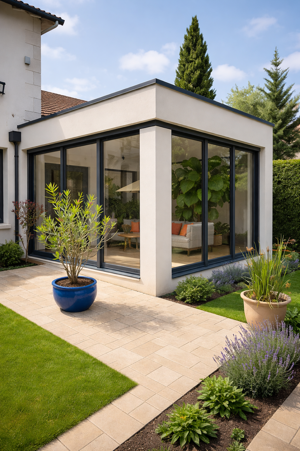 Pour agrandir le salon, créer un jardin d’hiver ou une pièce lumineuse, l’extension vitrée est idéale. Dans le 92, elle est fréquente sur l’arrière des maisons, pour ouvrir sur la terrasse ou le jardin.