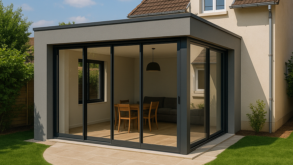 véranda Courbevoie, extension verre, MAV Construction, extension aluminium, maison moderne, extension lumineuse, architecture contemporaine, extension toit plat, agrandir maison, extension élégante, véranda design, entreprise bâtiment 92, extension durable, extension haut-de-gamme, rénovation maison, extension urbaine, extension harmonieuse, maison vitrée, extension sur-mesure, construction moderne.